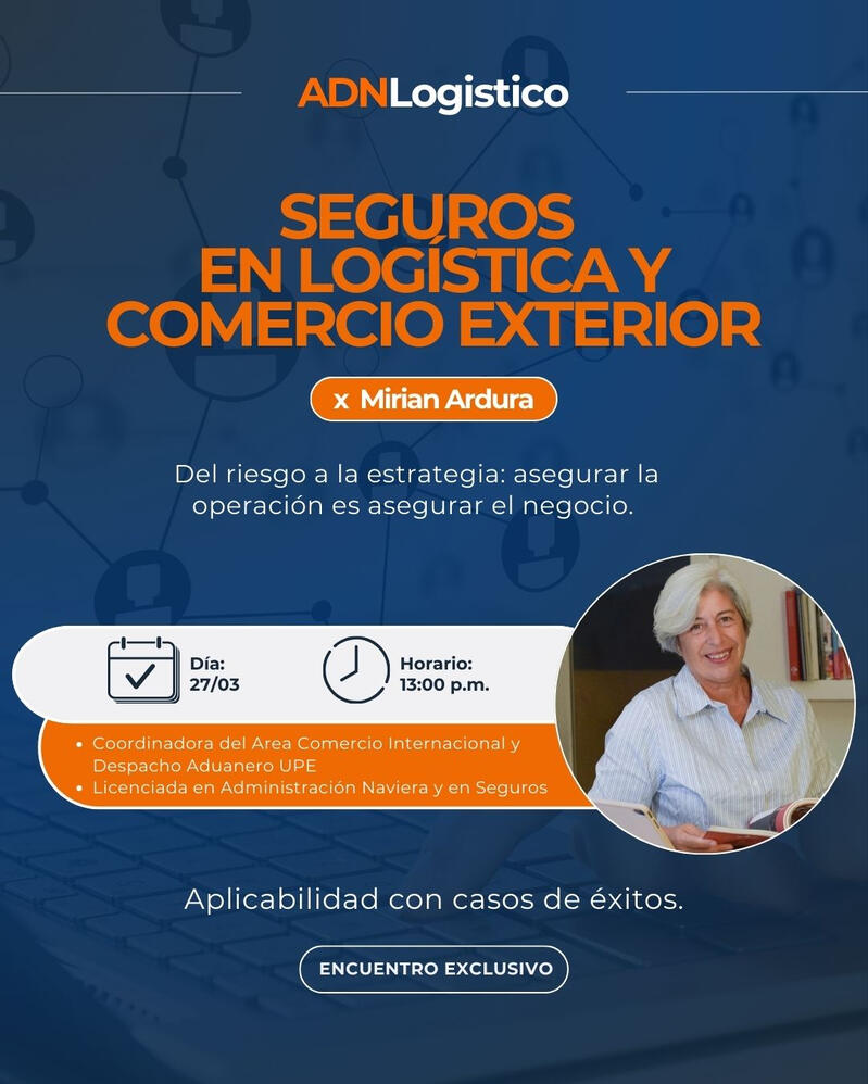 Del Riesgo a la Estrategia: Asegurar la Operación es Asegurar el NegocioEn este encuentro exclusivo para miembros de ADNLogistico y empresas seleccionadas, conversaremos sobre cómo transformar la gestión de seguros en una ventaja estratégica para proteger la operación y acompañar la toma de decisiones.🎙️ Disertante: Mirian Ardura▪️ Lic. en Administración Naviera y en Seguros.
